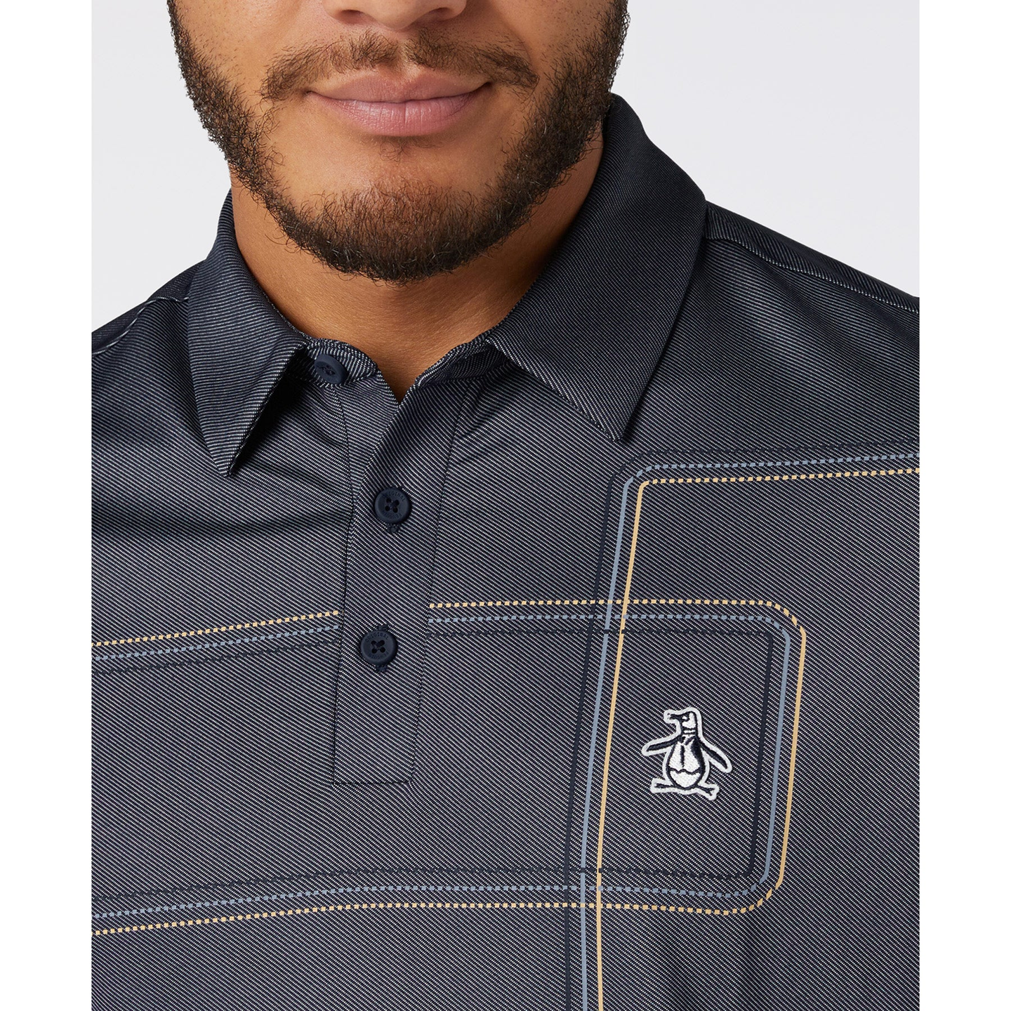 When happy hour calls, answer in style with this Original Penguin polo shirt for men. A fun 'Sake-Tini' print offers a playful twist, while the lightweight single knit fabric keeps you feeling fresh and comfy as you make your rounds. Moisture-wicking technology helps keep you dry, while added stretch ensures you can move unrestricted.